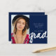 スクリプトカジュアルグラード |写真シンプル卒業発表には、手書きのタイポグラフィとタイプがミニマル含まれる。背景色は学校の色に合わせて変更できる。友人や家族に、あなたが大学院を持っていて、彼らの将来の計画が何を伴うかを知らせなさい。正面には名前と学校の詳細の縦写真がある。背面には個人メッセージと追加文字がある。クリックこのデザインに編集し、個人詳細と写真を追加する。