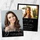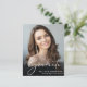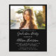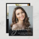 この祝予算の黒い卒業発表とパーティの招待状スタイリッシュでフレンドリー、卒業生の業績を発表。彼女のお気に入りの写真は、白い台本の上に重ねエレガントられた「大学院」でカードを満たし、その下に彼女の名前、学校、クラス年を追加する。背面に、追加の写真と卒業パーティーの詳細を追加シンプルレタリング白。