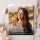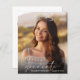 白いエレガント台本に「卒業」の写真を重ね、その名とクラスの年をタイポグラフィの白いで描いた予算の卒業記念パーティーの招シンプル待。反対側に、グラードパーティー詳細を追加。
