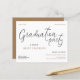 より小さいサイズ4.5 x 5.6インチ半光沢110ポンドの重量に代わるコストのBUDGETの値は、ポストカードと同様の厚さ(ただし、ポストカードとして使用するには適さない)。1枚につき1枚の招待状がある。予算スクリプト文字卒業パーティ招待状。メインシンプルヘッダーを持つトレンディータイポグラフィデザイン、卒業パーティ、セットされたフォントブラック。黒と金ゴールドの残りの文字は簡単パーソナライズされたに、また自由に編集可能な文字の色やスタイルを変更することができまもしすカスタマイズクリック、背面の金ゴールド背景だけでなく、さらに多くのオプションを選択できます。