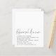 予算スクリプト白黒リハーサルディナーより小さい4.5インチx 5.6インチ代替の予算価格。半光沢110 lbカードストックで利用可能)。ヘッダーはセットの手書きエレガントスタイルに含まれ、その下に詳細がある。トップには白宇宙がコンテンポラリー感じ!情報で簡単にパーソナライズ。