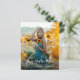 A Budget Script 2 Photo Graduation Party招待状と手書きフォントフルブリードポートレート写真の正面に名前と卒業詳細。背面には2番目の写真と追加のパーティー詳細がある。このクリックデザインに対する編集ボタン。