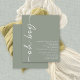 予算ミニマリストのスクリプトああボーイセージ赤ちゃんシャワー。4.5インチx 5.6インチの低価格の代替品。ハガキと同様の厚さのセミグロス110 lbカードストックで利用可能。1枚に1枚ある。オコンテンポラリーベビーを回転し、手の側に離れと簡単に自分の詳細に文字の残りの部分をパーソナライズするスタイル。