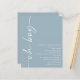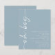 予算ミニマリストスクリプトああ男の子ほこりっぽい青の赤ちゃんシャワー招待状。4.5インチx 5.6インチの低価格の代替品。ハガキと同様の厚さのセミグロス110 lbカードストックで利用可能。1枚に1枚ある。オコンテンポラリーベビーを回転し、手の側に離れと簡単に自分の詳細に文字の残りの部分をパーソナライズするスタイル。