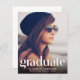 卒業発表フレンドリーは、卒業生の業績を発表するための予算案の選択肢スタイリッシュで、卒業生の写真である「卒業生」がトレンディーホワイト型タイポグラフィに含まれ書て、ラインと彼の名前、学校とクラスの年ユニークを含む。