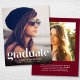 卒業後の写真フレンドリー「卒業生」を含む予算と卒業発表スタイリッシュは、ラインと彼の名前、学校とクラスの年とトレンディーの白いタイポグラフィでユニークす。裏面に、赤い背景に白いタイポグラフィのパーソナライズされた写真とメシンプルッセージを追加。