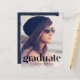 卒業発表フレンドリーは、卒業生の業績を発表するための予算案の選択肢スタイリッシュで、卒業生の写真である「卒業生」をトレンディー型タイポグラフィで撮影し書てユニーク、ラインと彼の名前、学校とクラス年を付けて発表する。裏側に、濃い青の背景の白いパーソナライズされたタイポグラフィシンプルに写真とメッセージを追加。