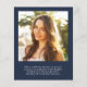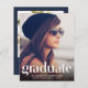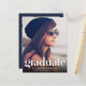 卒業発表フレンドリーは、卒業生の業績を発表するための予算案の選択肢スタイリッシュで、卒業生の写真である「卒業生」がトレンディーホワイト型タイポグラフィに含まれ書て、ラインと彼の名前、学校とクラスの年ユニークを含む。裏側に、濃い青の背景に白いタイポグラフィパーソナライズされたの写真とメシンプルッセージを追加。