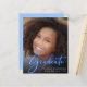 卒業生フレンドリーの業績を発表する予算オプション。このスタイリッシュ卒業発表は、ネオンブルーの脚本中にお気に入りのの「卒業生書」の写真をトップにスタイリッシュ載せたもの。その下に彼女の名前、学校、クラス年を追加できる。