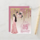 glamorかわいらしはガーリー、このピンクとバラの金ゴールドのグリッターの本質でフェイク、キンセアニェラ、甘い15、15女の子の誕生日パーティーの招待。文字テンプレートフィールドの両側には、必要に応じてRSVP、ギフトレジストリ、その他のsweet15パーティーイベント詳細を含めることができます。デザインは、華やかなロセゴールドのグリッタードレスでグリッター、ホイルバルーンとブルネットの女の子を滴下する機能。ブロンドと赤毛も用意。アタッチされたコレクションを表示してバリエーションを確認する。