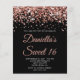 娘の16スタイリッシュ番目の誕生祝い予算紙招待を作成する。黒いフェイク背景色の上に装飾的なバラ金ゴールドグリッターデジタルアート無地のグラフィック。豪華な輝きとグリッターは、写真のような芸術的プリントの要素で作成される。必要な封筒をもし選択