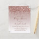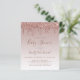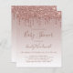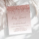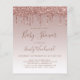 このトレンディーの赤ちゃんシャワーの招待縁どは、バラの金ゴールドの背景にキラキラと滴り落ちるバラ金ゴールドのグリッターグラデーションのフェイクを特徴とする。"Baby Shower"という言葉とMom-to-beの名前は暗いバラの手書きスクリプトに現れ、残りの文字は濃いバラサンセリフフォントに現れる。
