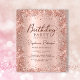 予算モダンバラエレガント金ゴールドメタリックとグリッター60バースデーパーティ招待状。手書きの書ガーリー跡、赤面ピンクスタイリッシュまたはバラ金ゴールドのブラッシュしたメタリックな背景と緩いグラムグリッターフレームを備えた大人のカードのデザインのまわりに。簡単は、任意の年齢に最適にパーソナライズする。