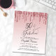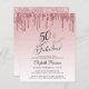 シックで予算エレガントの50thバースデーパーティーの招待フレンドリーは、ピンクとバラの金ゴールドがトップから滴り落ちるピンクの背景に対してスタイリッシュ、スクリプトで"50 & Fabulous"を書特集50thバースデーパーティーのグリッター。彼女の名前とパーティー詳細でパーソナライズできる。
