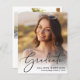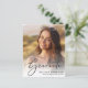この祝予算スタイリッシュ卒業発表とパーティの招待状でフレンドリーの卒業生の業績を。彼女の写真はカードを埋め、スクリプトの中に「大学院」でオーバーレイエレガントドし、その下に彼女の名前、学校とクラス年を追加する。裏面には写真を追加し、卒業式パーティーやオープンハウス詳細を追加する。