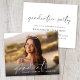 卒業記念エレガント会の招待フレンドリーは、シックな白い台本に「卒業生」の写真を重ね、その名前とクラスの年をレタリングの白いでシンプル示した。後ろに卒業式パーティ詳細を追加。この予算セミグロス紙は写真紙に似ている。より大きな5x7伝統的カードのストック版も利用可能(リンクにメッセージus)。