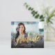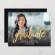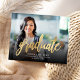 横モダン写真付きカスタム卒業発表「graduate」という言葉は金ゴールドフォイルフェイクスクリプトに現れ、卒業生の名前、学校、卒業年はホワイトサンセリフフォントに記されている。サンプル画像を自分の卒業生の写真に簡単に置き換える。黒いグラデーションのスクリ救済ーンでは、文字のポップを確保。逆が黒無地のい。高校や大学の卒業に最適。