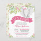 この可愛い女の子ゾウ予算の赤ちゃんシャワー招待かわいらし花と愛らしいベビーゾウ。美しい柔らかいピンク、緑、青は素敵なヴィンテージを追加する。