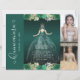 フローラエメラルドグリーンプリンセスガウンドレスグリッタースパークル15th誕生日キンセアニェラ招待状
