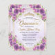 グラムモダンフローラボタニカルライトパープルバイオレットパステル金ゴールドティアラクラウンスパークルグリッターRSVP誕生日キンセアニラ招待状