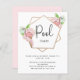 ピンクのフラミンゴを持つプールパーティの招待状。名前とパーティー・詳細のパーソナライズおよび追加夏、プール、7月4日のパーティーに最適。