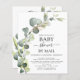 バジェットEucalyptus Greenery Succulent Botanical Waterカラー春男女兼用男の赤ちゃんまたはメール招待状によるベビーガールの赤ちゃんシャワー – お祝いされるべき特別な母親のためのボタニカルなと緑と美しくスクリプエレガントトのタイポグラフィを含みます。