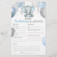 このベビー予測シャワーゲームカードは、風船と紙吹雪と青と灰色の男の赤ちゃんゾウを備えている。お客様に最適遊。