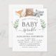 予算のウッドランド動物 – クマ、ラクーオン、キツネユーカリ緑の植物色の春男女兼用男の赤ちゃんまたはベビーガール赤ちゃんのシャワー白い背景に招待状を振りかける – は美しいスクリプトのタイポグラフィと植物性のと特別な母親がお祝いになるためにモダン、緑を含む。