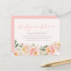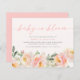 予算ベビー開花ピンクの花ガールベビーシャワー招待状。ピンクの水色の花、"開花のベビー"繊細なスクリプトとセリフのタイポグラフィがパーティー詳細を表示し、フローラをテーマにしたベビーシャワーお祝いに最適。