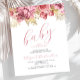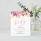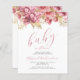 ピンクと金ゴールドの花や縁ど葉の頂上を飾る甘い赤ちゃんシャワー。下の「開花のベビー」はピンクの手書きエレガントスクリプトに現れる。文字をカスタマイズするには、mom-to-beの名前をピンクのスクリプトで、詳細を炭の灰色のサンセリフフォントで白い背景に。
