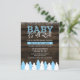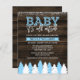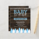 素朴冬バジェット少年ベビーシャワー招待状。このトレンディーデザインは、暗い木々の背景に白とライトブルーの木々を持つ雪の森を特徴としている。touchモダンにおもしろいスクリプトフォントことわざ「外部が寒いベビー」が追加される。