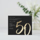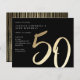 ミニマルモダンス50thバースデーパーティーの招待スタイリッシュはフェイク金ゴールドフォイル番号の手書きスクリプト50とあなたのパーティー詳細のクラシックserifフォントの黒い背景色でエレガント、と驚き大人誕生日の招待と女性シンプル。黒い背景色は任意の色に変更できる。