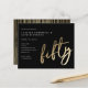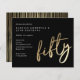 ミニマルモダンス50thバースデーパーティーの招待はスタイリッシュ金ゴールドフォイル番号の手書きスクリプト50とクラシックセリフフォントのパーティー詳細の黒い背景色にフェイクははっきりした、と驚き大人誕生日の招待と女性の大人驚きシンプル。黒い背景色は任意の色に変更できる。