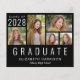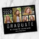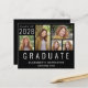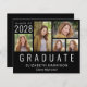5つのフレンドリー写真写真コラージュと大きな白い大文字の下に書の「卒業」を特集した彼または彼女のための予算黒卒業の発表。彼または彼女のクラスの年、名前と学校またはタイポグラフィの白いシンプル大学を追加。
