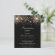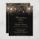 黒い背景飾にはフェイクグリッターと輝き。金色の手書で書かれたモダンスタイルの台本がある。カスタマイズしてパーティー詳細を追加する。