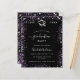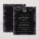 卒業モダン会エレガントの招待状。紫の紫の紫飾色のグリッターの塵を持つ黒いフェイク背景。名前、年、および詳細のパーソナライズおよび追加。
