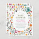 あなたの赤ちゃんシャワーのための明るくカラフル春デザイン。このカードの前には手で庭の花や葉を描きて縁ど、右上の角に散水缶を持ち、上の角に小さなハチを二つ、下の角に蝶のペアを離れ、手で描かれた。目立つ主な色はターコイズ、ピンク、赤、オレンジ、黄色、緑。あなたのイベント詳細は、粗いセリフの大文字で"赤ちゃんシャワー"と素朴なタイポグラフィで表示され、鉛筆で手書きのmom-to-beの名前。カードは同じ縁どに逆に中部領域も咲く芽や花で満たされる。Zazzleの予算選択の一部として、このシートは標準の招待状サイズまたは紙品質ではない。このデザインもしは、私たちの店で見つけることができる招待カード上で、またはあなたの選択の製品に転送するためにZazzle Make Machineを使用して使用する。感じお気軽にもしお問い合わせ