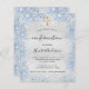 銀フェイク金色の背景飾に青いグリッターの塵と金フェイク色のクロスを見せる。名前とパーティー・詳細のパーソナライズおよび追加黒い文字。