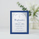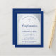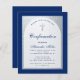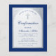 予算の少年の確認招待。青い王室の長方形の背景には、白い背景にフェイク内側の青い文字を持つ銀箔アーチがある。「確認」と名称は書書書にあエレガントり、1行目はアーチ型の文字。