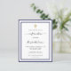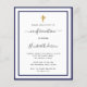 確認モダンの招エレガント待。ネイビー飾ブルーフレームと金色のクロスを持つ白い背景。名前と詳細のパーソナライズおよび追加黒い文字。