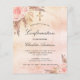 バラ金ゴールド、赤面ピンクの素朴なメタリックフェイクな背景を探す。バラ飾金ゴールドとピンクの花模様、バラ、パンパスグラスと黄金の十字架。名前と詳細のパーソナライズおよび追加