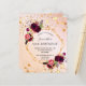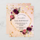 フロント:50歳、50歳(または任意の年齢)の誕生日パーティーへの招待。バラ金ゴールド、赤面ピンク色の背景グラデーションと金ゴールド幾何フレームフェイク。暗い紫飾とブルゴーニュの花、バラとボホスタイルの羽を持つ。金ゴールドフェイクの星が滴る。名前とパーティー・詳細のパーソナライズおよび追加名前は手書で書いたスタイルと黒い色の文字。戻る:バラ金ゴールド、赤面ピンクのグラデーション色の背景と黄金の星。