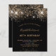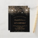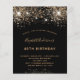 40モダン歳スタイリッシュ(または任意の年齢)の誕生日パーティーのための魅力的で魅力的な招待。黒い背景飾にはフェイクグリッターと輝き。金色の手書で書かれたモダンスタイルの台本がある。カスタマイズしてパーティー詳細を追加する。