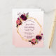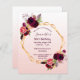 前:50歳(または任意の年齢)の誕生日パーティーへの招待。およびエレガントトレンディーバラ金ゴールド、金ゴールド幾何学枠を持つ白いグラデーシフェイクョン背景。暗い紫飾とブルゴーニュの花、バラとボホスタイルの羽を持つ。名前とパーティー詳細のテンプレート。名前は手書文字のスタイルと紫の色の文字です。戻る:バラ金ゴールド、白いグラデーション背景。