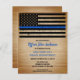 シンブルーライン警察の退職招待状または警察卒業党の招待状。年祝間の献身的なサービス、またはあなたの新しい警察アカデミーの卒業生祝、および招待状の友人と家族は、この素朴な木材Thin Blue Line旗警察の退職招待状と警察アカデミーの卒業招待と法執行パーティーにあなたの法執行のデザイン – 米国旗の色の旗のデザインで動揺して米国。これらの予算警察退職案内カードは、無料の警察退職招待状に代わるカードである。この警察官の退職案内はまた、警察学校の卒業招待に最適である,パーソナライズの変更会場。警察の退職ギフト、警察の卒業ギフト、パーティーの好意、および物資に一致する私たちのコレクションを参照。COPYRIGHT © 2021 Judy Burrows, Black Dog Art - All Rights Reserved.予算警察退職金シンブルーライン招待状