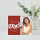 あなたの友人や親戚が必ず卒業生祝の節目を達成する!イベントが思い出す素晴らしためシンプルに、こモダンの、写真パーソナライズされたの「日付を保存する」予算発表を送信する。グラフィックはっきりした、白いタイポグラフィがレンガの赤い背景をオーバーレイ。右側に、選択した写真を追加。卒業生のカスタム名前、クラスの年と日付で文字をパーソナライズする。あなたのカスタムメッセージと赤い卒業キャップのアイコンが背中を飾る。マッチング招待状、サンキューカード、キャップトッパー、ナプキン、プレート、その他の卒業グッズもこのトレンディーとコレクションで利用でスタイリッシュきる。彼らの特別なスタイリッシュ機会におもしろいを追加することを保証!卒業生の名前、学年、学年、学年、日付、メッセージを入力しカスタムて、写真を追加するだけで、簡単にこの卒業「日付を保存」予算発表カードをパーソナライズできる。質問や要望があれば私に連絡して下さい。