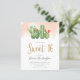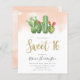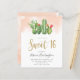 こ祝の夏の招待状のsweet sixteenモダンパーティーメキシコまたは砂漠をテーマにしたお祝いに最適。水彩のサボテンをトップに、赤面ピンクの背グラデーション景で。「Sweet 16」は金ゴールドフォイルフェイクスクリプトで表示される。簡単カスタマイズにパーティー詳細でシンプルタイポグラフィ。Zazzleの予算選択の一部として、これらの招待状は封筒と一緒にも、標準的なサイズの封筒に収まらない。最も近いサイズはA6だが、約50センチのギャップがある。広くもし利用可能なA6封筒を使用できる嗅ぎ心地の欠如を気にしない。それ以外の場合は、このデザインを標準の5x7形式(エンベロープ付き)に転送するには来、デザイン転送ツールを使用する。大まかな目安として書は、100の予算招待状(ボリュームディスカウントを含む)は39ドルで、封筒を含む100の標準的な5x7招待状は約135ドルである。マイレージは、Zazzleの利用可能なプロモーションコード、サイト全体の販売、または価格の変更によって異なる場合がある。
