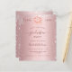 Aモダン、エレガント招待。銀フェイクのグリッター粉とフェイクキャップと飾共に、赤面のピンクのメタリックな外観の背景。名前、年、およびパーティー・詳細をパーソナライズおよび追加する。