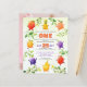 バジェット踊りフルーツ最初の1番目の誕生日パーティー写真。4.5 x 5.6インチ110ポンドの半光沢を低価格。小さなおもしろいデザインのための誕生祝い招待状!文字は簡単パーソナライズされたに自分の詳細に。背面のサンプル写真を自分の写真に置き換お気に入りのえる。