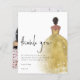 予算金ゴールドガウン女の子ダークヘア写真キンセアニラありがとう。4.5インチx 5.6インチの低価格の代替品。デフォルトのオプションであるセミグロス110 lbカードストック(招待状に推奨)またはサテン仕上げ80 lbシンナー紙ストック(エンクロージャに最適)で利用可能。右エレガントに美しい輝く金ゴールドのドレスで暗い髪の女の子のバックビューと感謝してい15thバースデーパーティーのためのスタイルと、感謝の設定された手書きスタイルスクリプトで。自分の詳細に文字の残りの部分を簡単にパーソナライズ。背面にあるサンプルのphtoをパーティーのでお気に入りの置き換える。